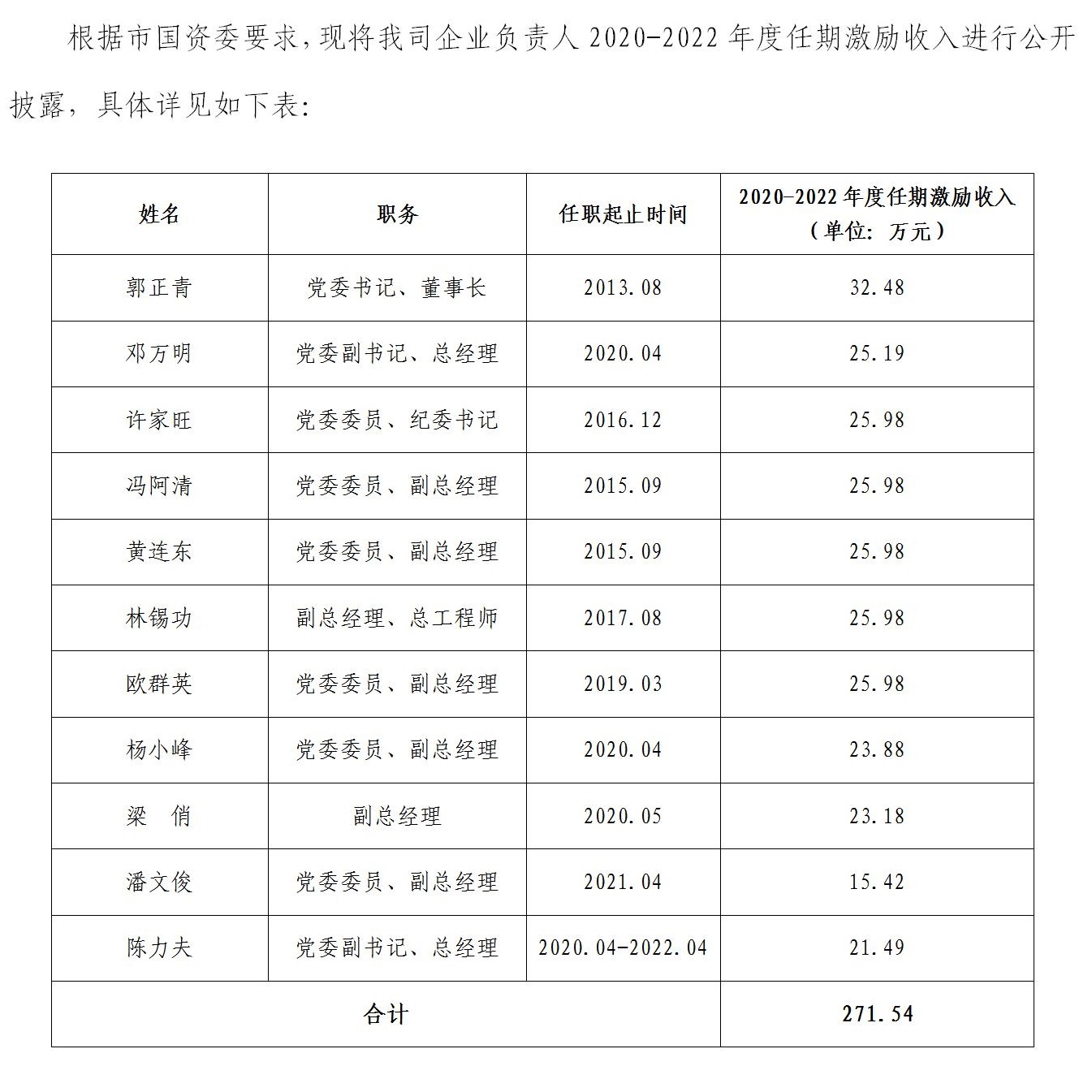 2020-2022年度市城发集团企业负责人任期激励收入披露表